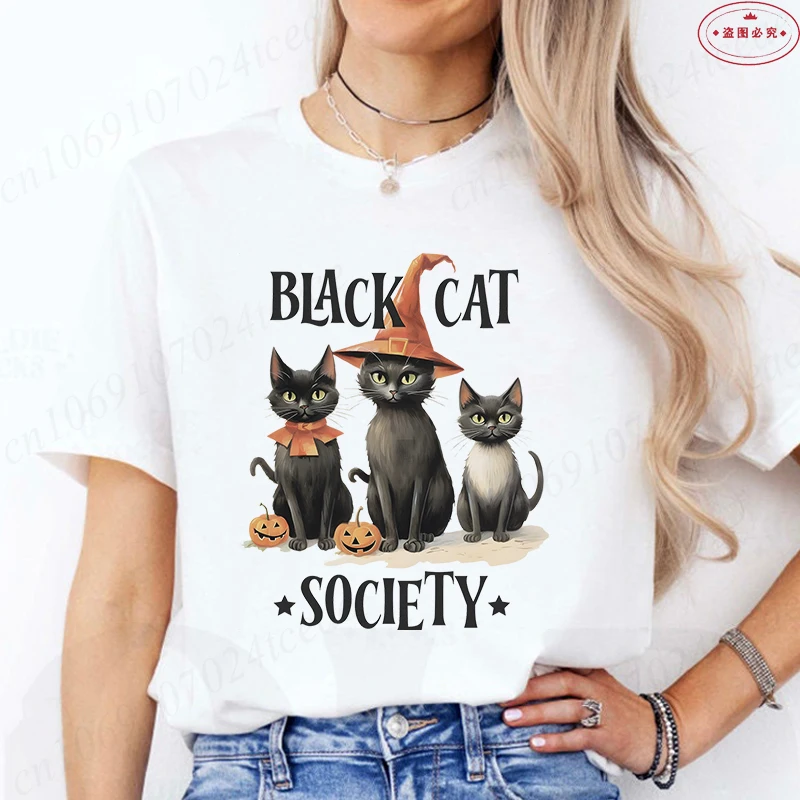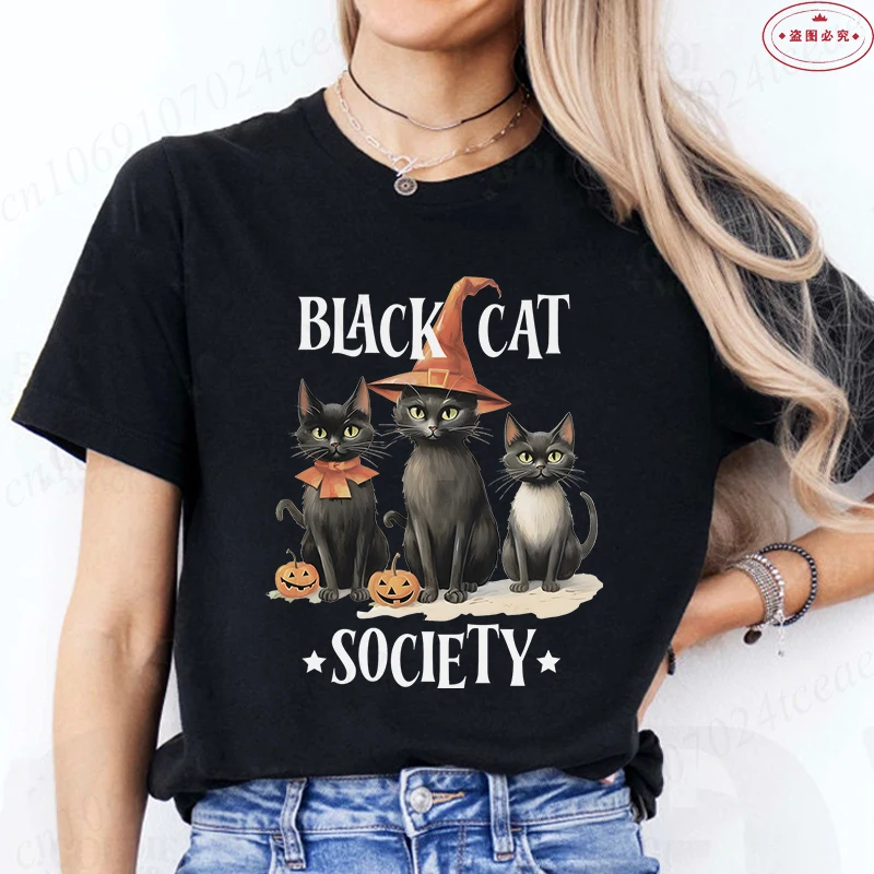 Black Cat Halloween Spooky T-shirt for Women