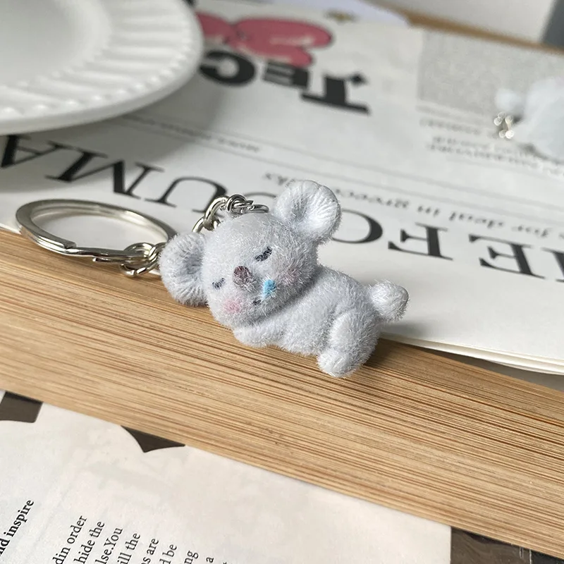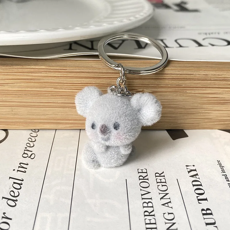 Fluffy Koala Animal Keychains For Friend Gift Resin Cartoon Cute 3D Flocking Pet Pendant Bag Box Car Key Ring Jewelry