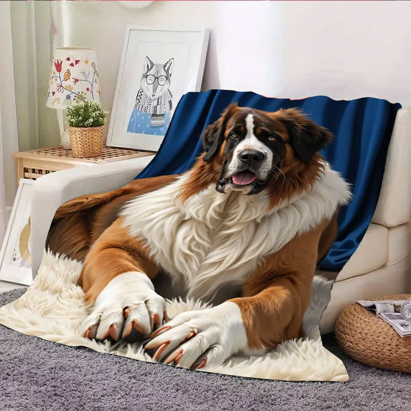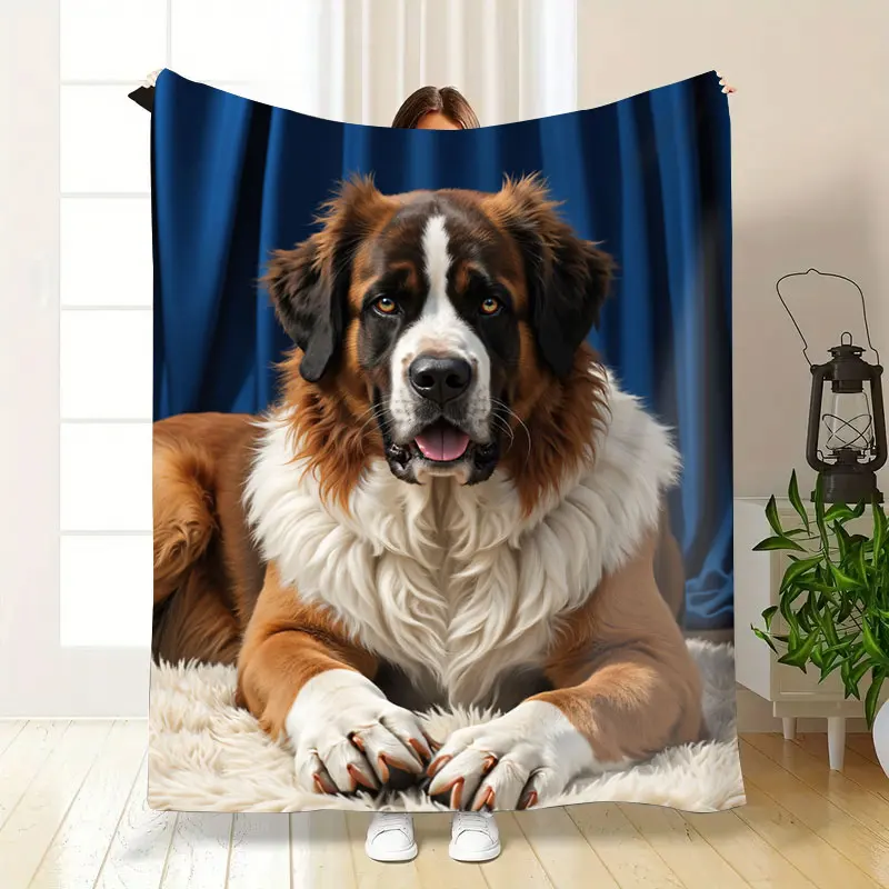 Flannel Blanket Cozy Saint Bernard Print Blanket